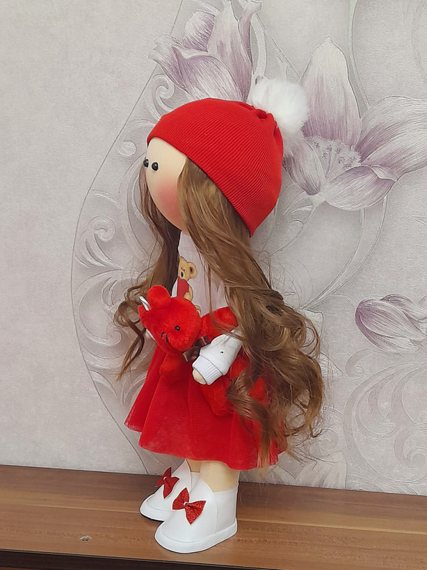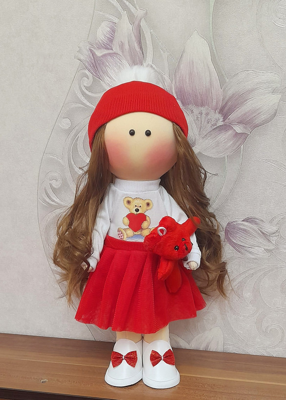 عروسک مدل روسی طرح دختر به همراه خرس رنگی ارتفاع ۳۲ سانتی متر