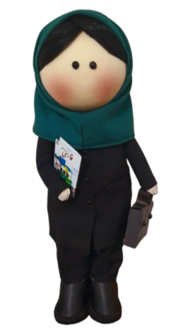 عروسک مدل روسی طرح خانم معلم مقنعه سبز ارتفاع ۳۲ سانتی متر